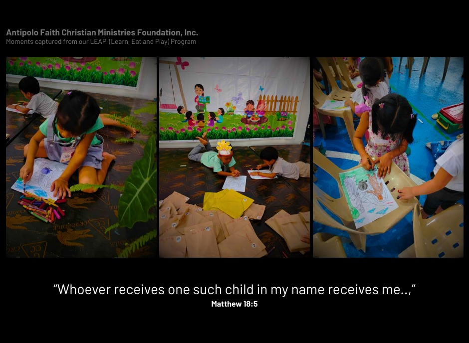 AFCMF provides Christ-centered support in education, nutrition, livelihood, and community development for vulnerable families in Antipolo.